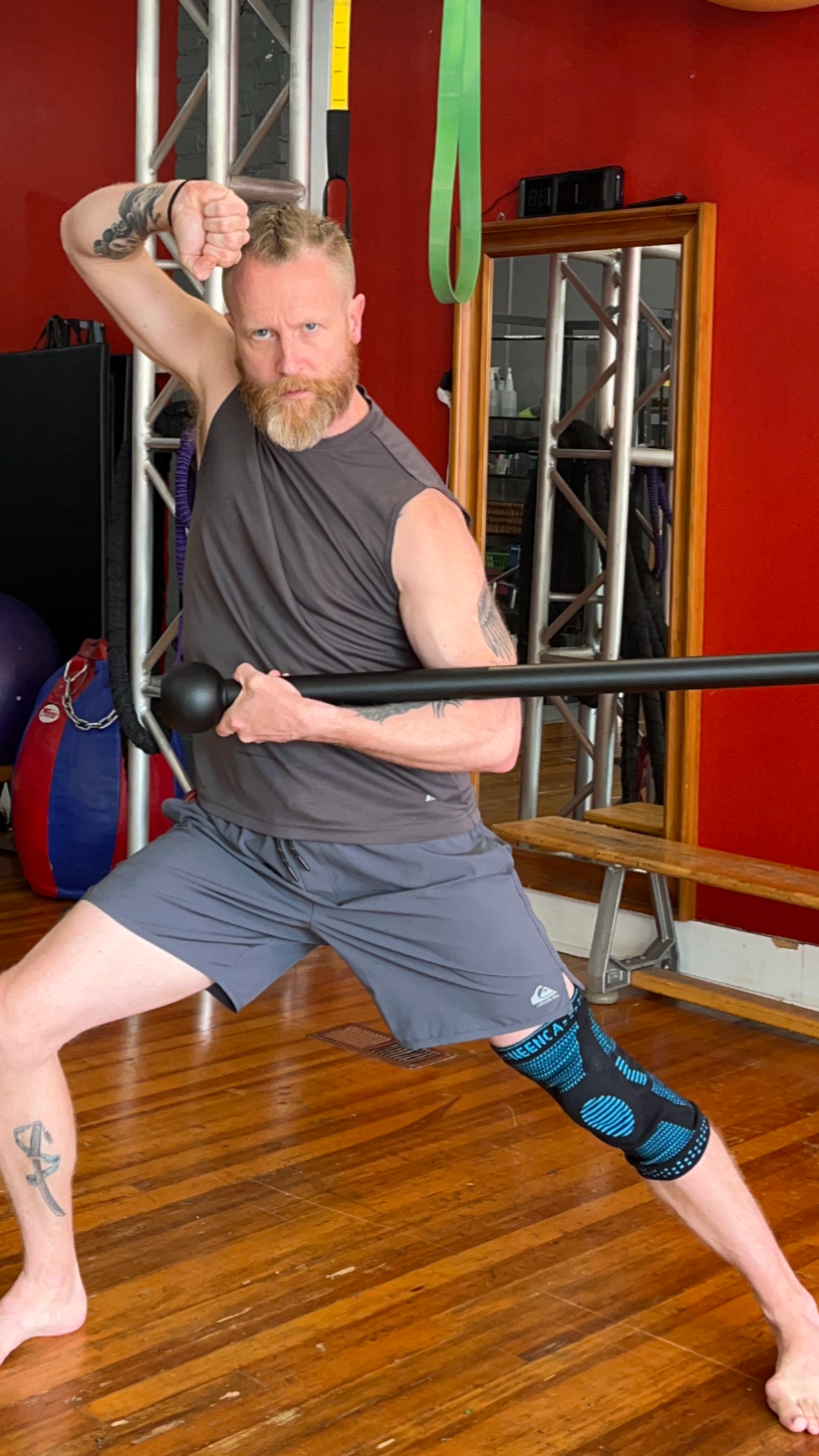 Steel Mace Flow is a flow-based unconventional movement practice that improves mobility, strength, and prevents injury. It is also a practice of creation, expression, and freedom.